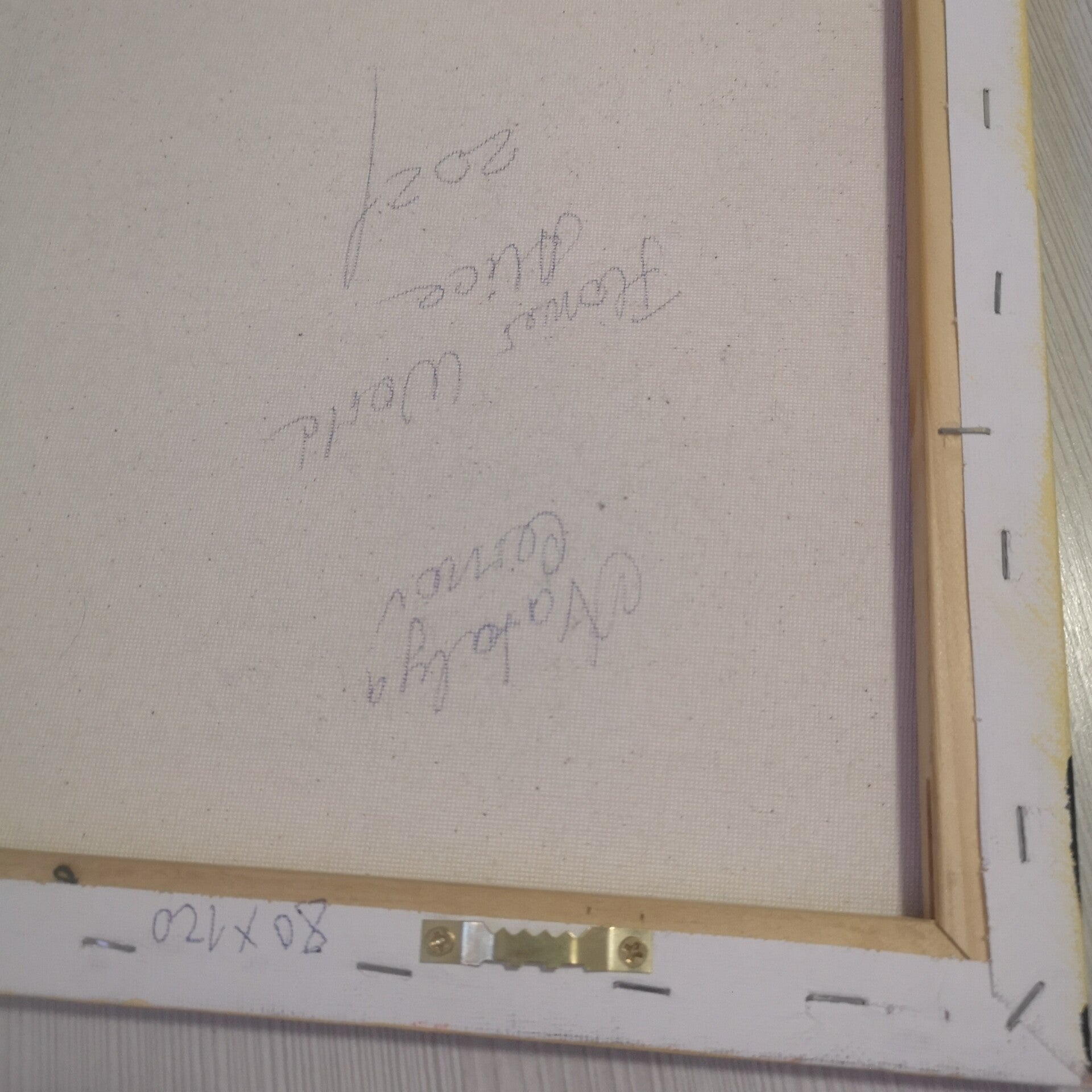 Werk auf Keilrahmen. Kann direkt aufgehängt werden.